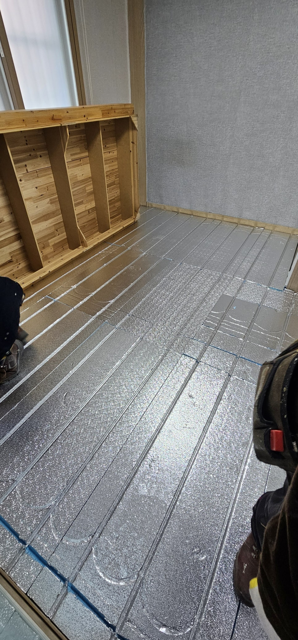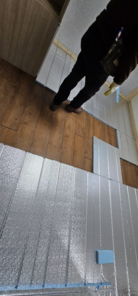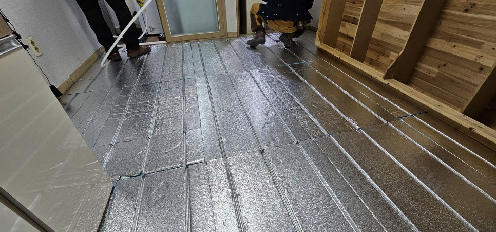 건식난방(25A공법/시공두께26mm)과 각 실에 전기보일러 설치가 완료되고 시운전 중입니다.